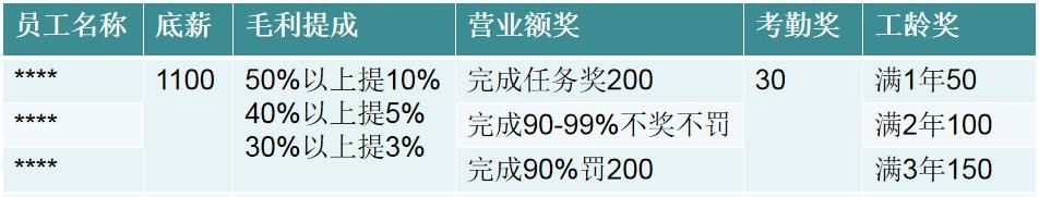 3、营业奖金,完成任务有奖,低于指标有罚。