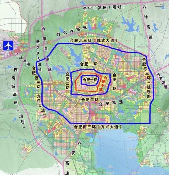 一环二环越来越堵,住在城市,交通便捷是关键。随着城市日新月异的发展,合肥现有的一环、二环的交通构架,似乎难以满足日益增长的机动车。 不如将以下道路设为三环路:北段为魏武大道,东段为肥东龙兴大道,南段为方兴大道滨湖段,西段为新206国道段。合肥三环路围合面积达1000平方公里。
