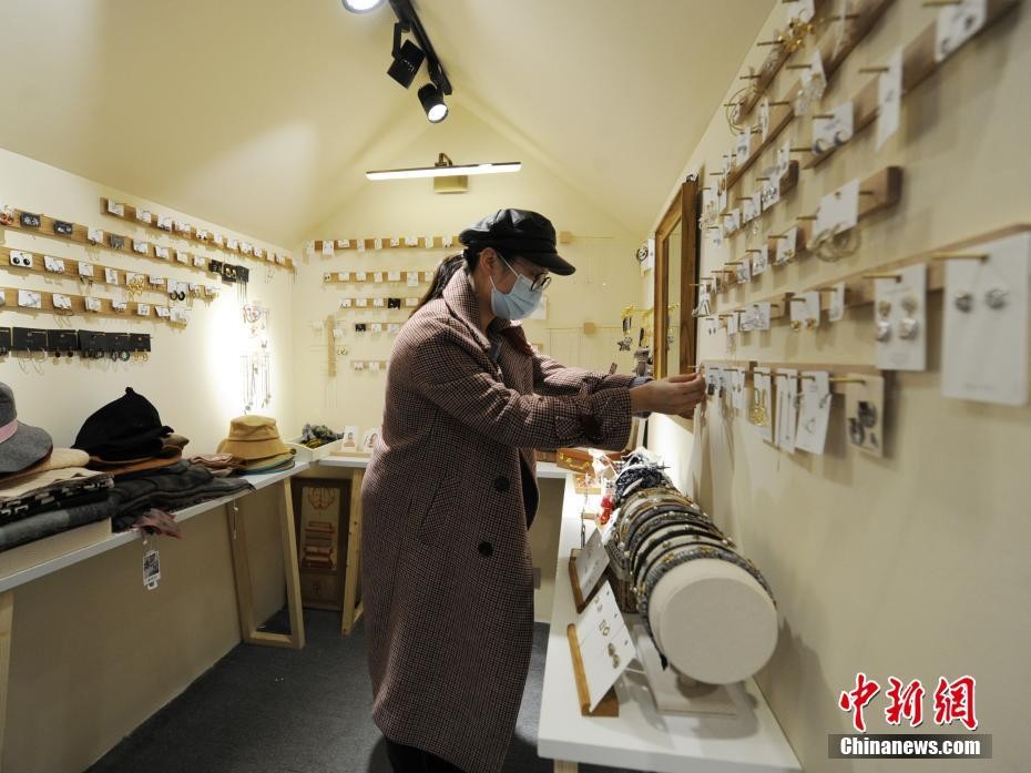3月22日,在吉林长春一商场内,顾客在“共享衣橱”挑选饰品。这家“共享衣橱”有近千件衣物、饰品供市民挑选租赁,工作人员会对衣物等进行消毒,确保清洁、安全。这种以租代买的方式,受到年轻人的青睐。中新社记者 刘栋 摄