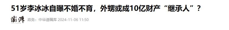 先前就有外媒爆料称“李冰冰在和小16岁男友分手后直言没有结婚生子打算,巨额财产打算留给妹妹的两个孩子”。