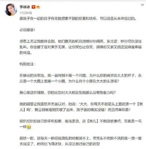 分手之后李冰冰也是“水泥封心再不提爱”,在之后的日子里更多的就是和外甥、外甥女的互动,还发小作文感慨和孩子在一起的时光。