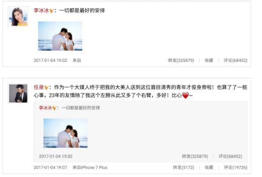 根据任泉的发文可以看出来这段感情是由他牵头介绍的。