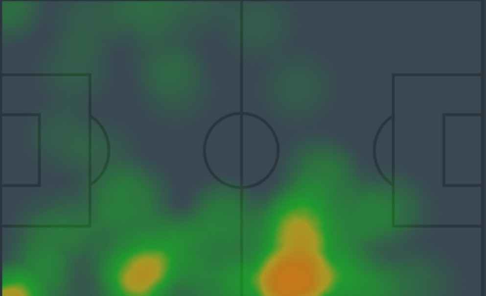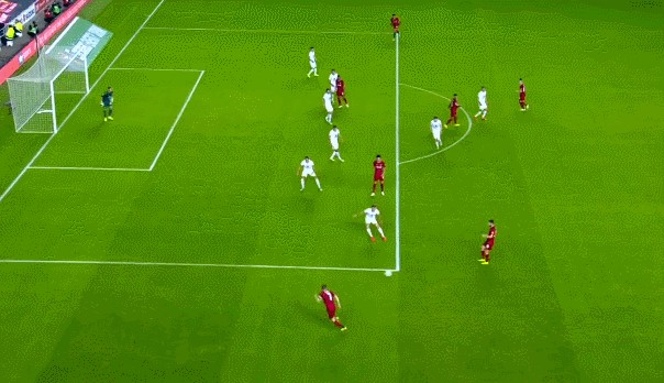 如上说道,一旦亨德森、法比尼奥或者维纳尔杜姆受伤,克洛普想要保持防守硬度,米尔纳会是首选。他可以替代任何一个人,出现在任何一个位置上。米尔纳所带来的防守硬度体现在他强大的跑动能力上,他甚至可以覆盖全场。我们列举一场比赛看看米尔纳的跑动范围,在中后场,他能够覆盖整个球场宽度。这就是防守贡献。