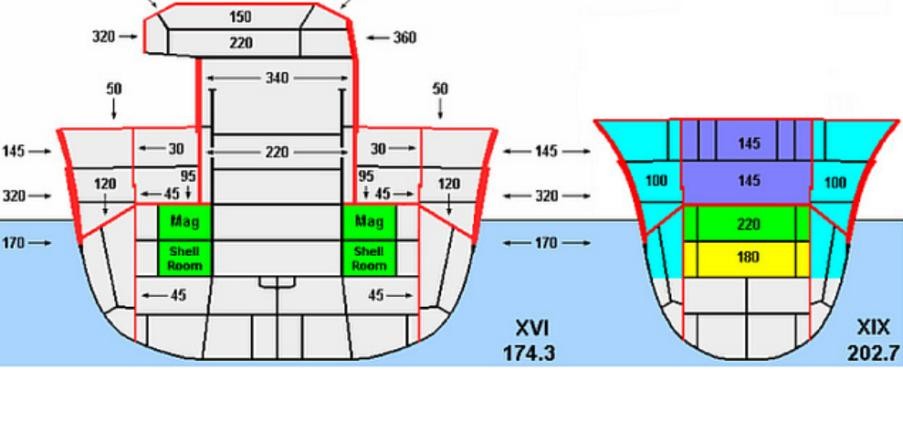 当然,俾斯麦号的防护系统也并不是完美的。虽然该舰能够连续承受高爆弹的轰击,但是一旦敌舰使用穿甲弹,并命中该舰水位线以下的位置,那么就很容易丧失战斗力,即便该舰艇配备有多个水密舱也无济于事。