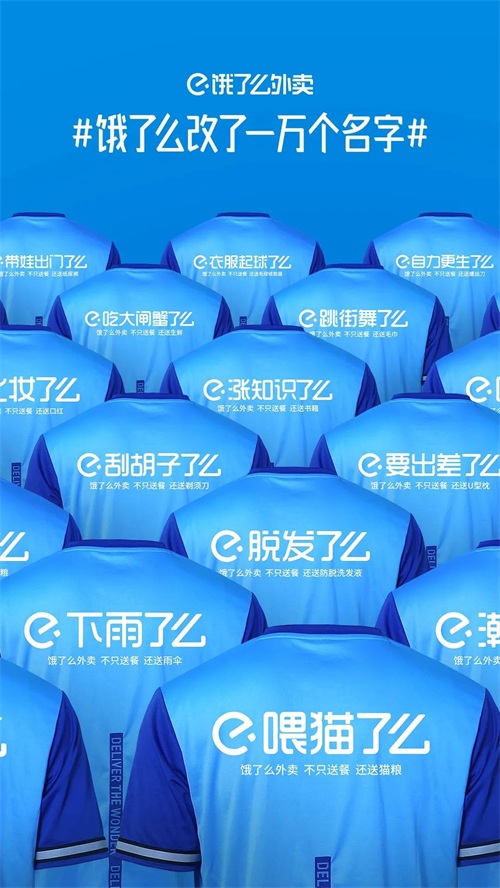 困了么、渴了么、累了么、饱了么……这些饿了么的新名字,覆盖了我们生活中琐碎又真实的需求场景,每个名字又对应着饿了么相应的业务。信息传达时尽量精简,让消费者的注意力聚焦在核心信息“饿了么不只送餐,还送万物与服务”之上。
