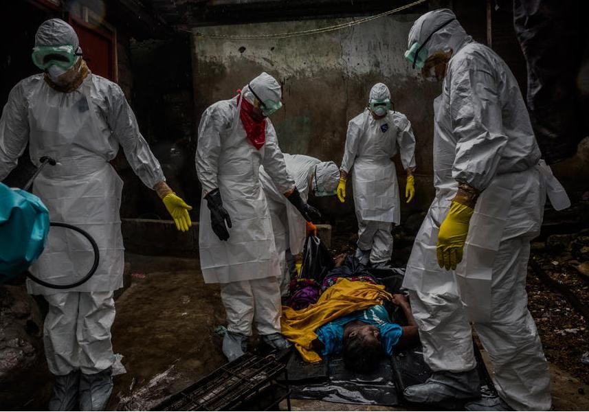 当时人们对埃博拉病毒的传染性毫无了解,所以这些在葬礼上的人洗过手之后又会进一步传播,导致感染人数爆炸性增长。