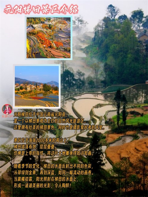 元阳梯田是一个集自然风光、人文景观和民族风情于一体的旅游胜地。在这里,游客可以领略到壮美的梯田景色、感受哈尼族文化的独特魅力、体验到丰富多彩的民族风情和品尝到地道的农家美食。