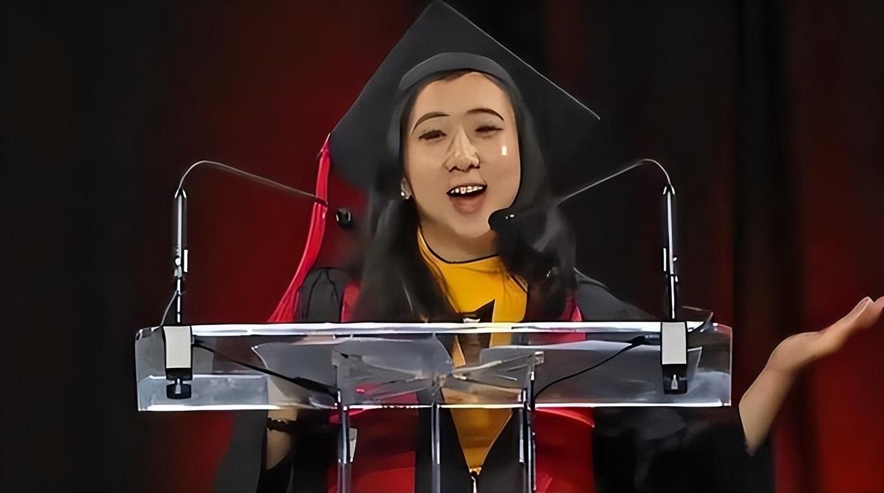 为在美国当白领、挣美金,公开在毕业典礼上大肆夸赞美国,贬低中国。