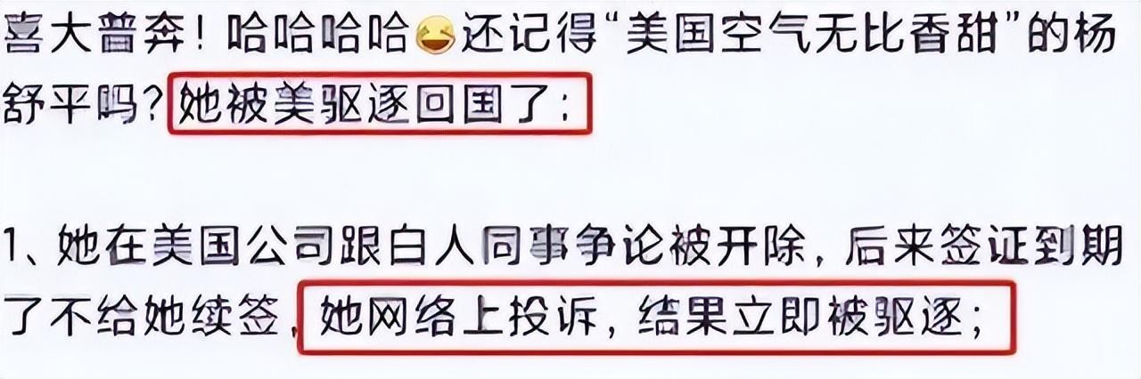 纷纷去她的评论下留言,基本都是在谴责杨舒平崇洋媚外、忘恩负义。