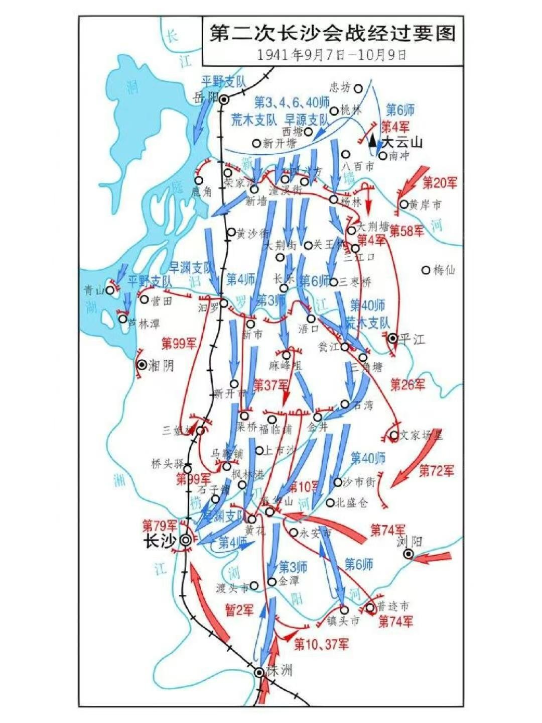 在湘北地区,9月18日,日军第6师团及奈良支队与第52军发生激烈交锋,双方交战数日后,52军最终退守新墙河东南高地。另一支日军上村支队于9月22日由岳阳出发,经水路一部分敌军在沿洞庭湖东岸鹿角登陆,主力则迂回汨罗江以南,在营田登陆,在突破第70军第95师阵地,继续向东突进,企图切断粤汉铁路和长沙、平江间的公路。