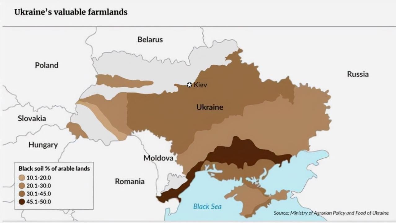 乌克兰黑土主要分布在除北部区域外的大多区域,和第聂伯河流域有较大部分的重合,其中黑土含量最高的区域在第聂伯河下游地区。可以说,乌克兰的农业地位一方面来自于黑土的滋养,另一方面来自于第聂伯河的灌溉。
