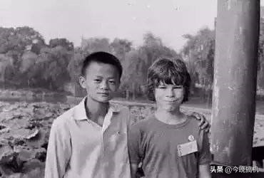 马云在小时候就暴露出极佳的英语天赋,12岁时,马云买了台袖珍收音机,从此每天听英文广播,那时候的小孩很多人都没机会上学,可马云却天天听这种大家根本听不懂的语言,还乐此不疲。不过小时候的马云可是非常顽皮,据网上资料记载,13岁起,马云因为打架记过太多,曾被迫转学到杭州八中。下面这张老图就是马云小时候结识的一位外国朋友,不知道他当时是用中文还是蹩脚的英文跟他对话呢?可能这也就马云和这位外国人知晓了。
