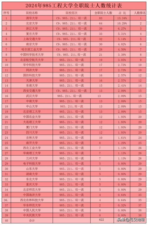 4、全职院士数量排名