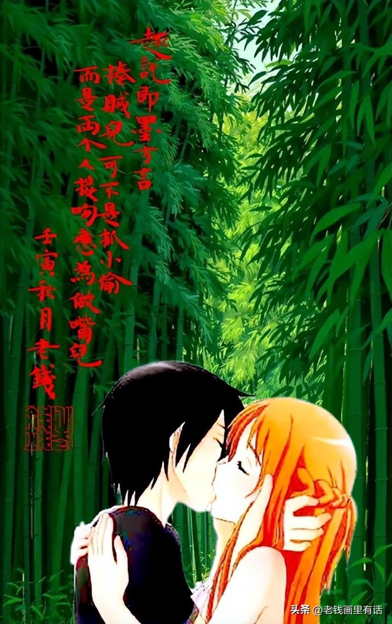 老张哈哈大笑起来,他知道这是老婆子看到电视上两个演员接吻的情节,不好意思了。