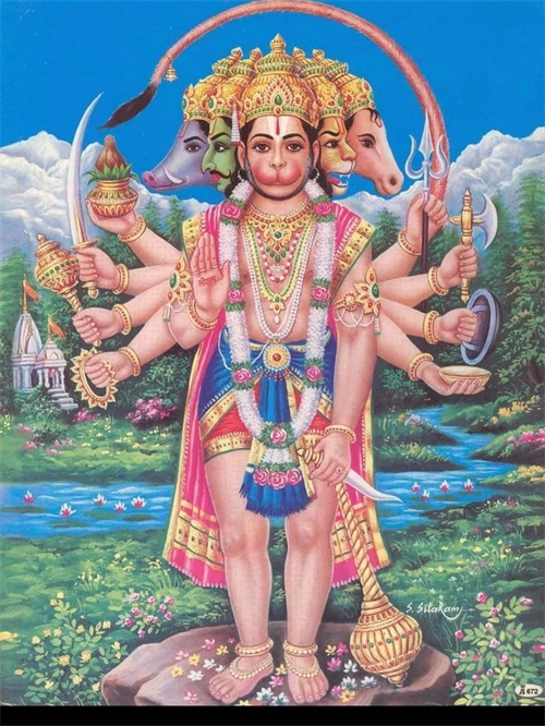 印度神猴——哈奴曼,印度史诗《罗摩衍那》的神猴,拥有四张脸和八只手,解救阿逾陀国王子罗摩之妻悉多,与罗刹恶魔罗波那大战。罗摩是大神毗湿奴化身。罗摩之妻悉多非常美丽,被楞伽城十头魔王罗波那用计劫走。罗摩在寻妻途中助猴王须羯哩婆夺得王位。猴王派手下大将哈努曼,随罗摩去寻妻。哈奴曼勇敢机敏,能腾云驾雾,火烧楞伽宫,盗仙草,终于帮助罗摩征服了强敌,救出悉多。