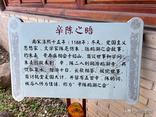 一个疑团就是:为什么选择在鹅湖书院呢?原来,铅山地处福建与江西交界处,离浙江也近,考虑到三个方向的路程,当时吕祖谦在浙江永康、朱熹在崇安即现在的武夷山市,而陆九渊、陆九龄在金溪,综合考虑,铅山几乎在三路人马的中间位置,所以,选择了铅山,而且,鹅湖书院从唐代以来,一直是铅山的名刹,也适合聚会,所以选择鹅湖书院成了理所当然,至于辛弃疾与陈亮的会晤,则完全是仿照千年一辨的做法,当时约了朱熹,但朱熹没有应约,原因是立场不同,朱熹是主张和谈的,不主张抗金。