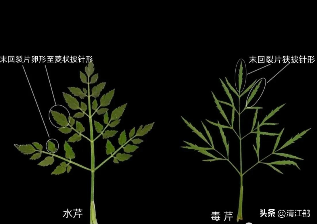 图片07):水芹与毒芹在叶片上的区别