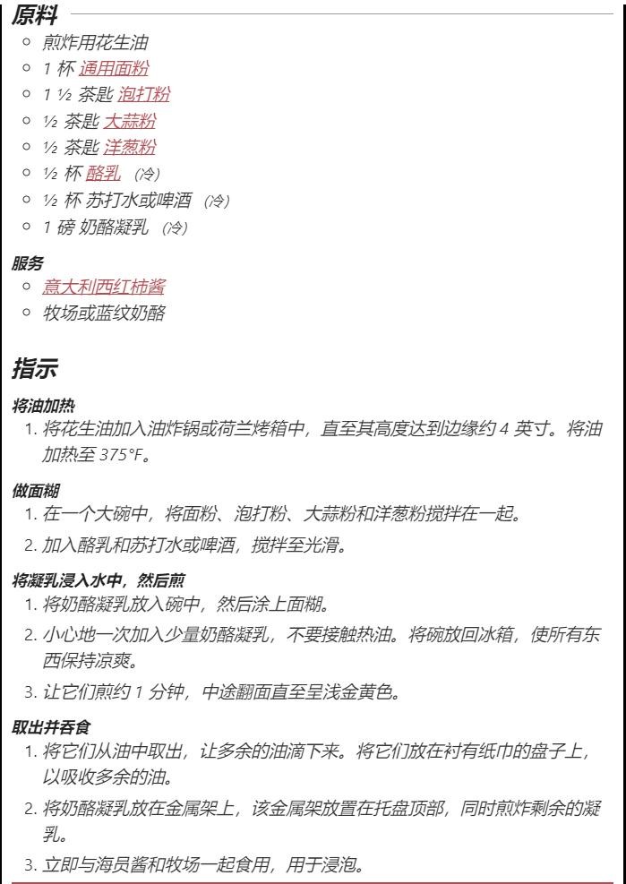 附:原装正宗fried curds的制作配方(我还行,不能多吃)