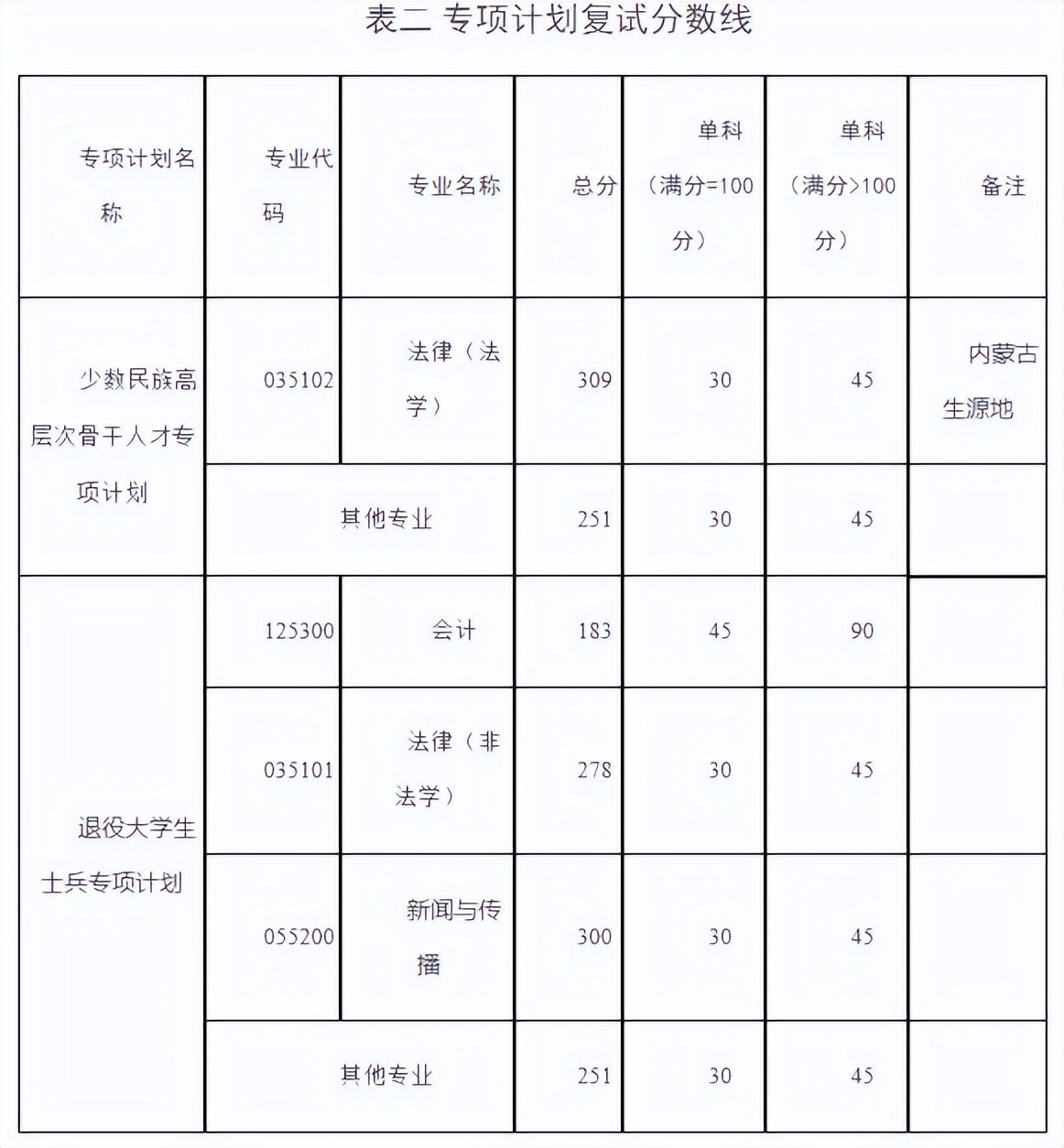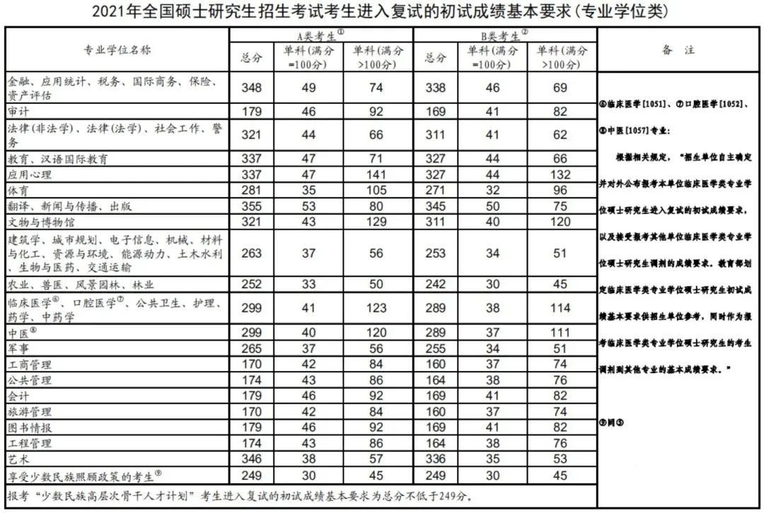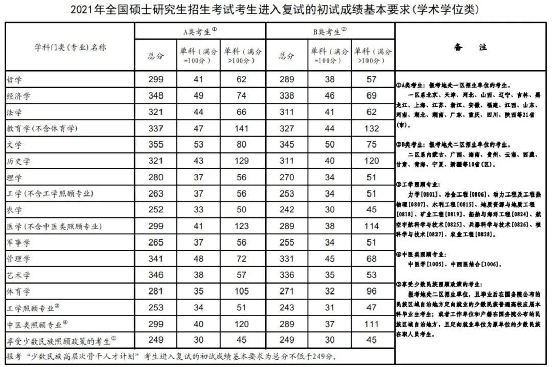 表中低于国家B类考生线的复试分数线要求,仅限符合“享受少数民族照顾政策”的考生。符合国家加分政策规定的考生,如初试总分加分后达到学校复试线,可进入复试。