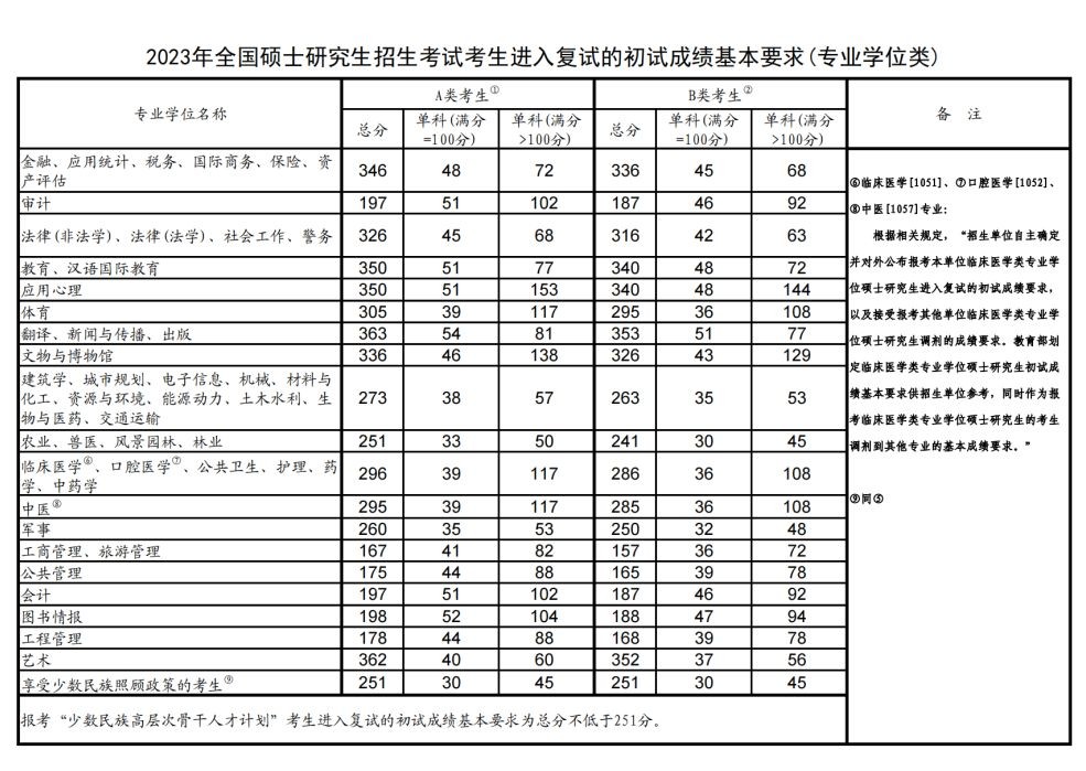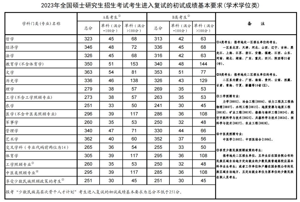 根据教育部《2023年全国硕士研究生招生考试考生进入复试的初试成绩基本要求》(国家分数线),结合学校招生计划情况,按照差额复试比例要求,部分专业在符合国家线的基础上进行自划线。普通计划见表一,专项计划见表二。