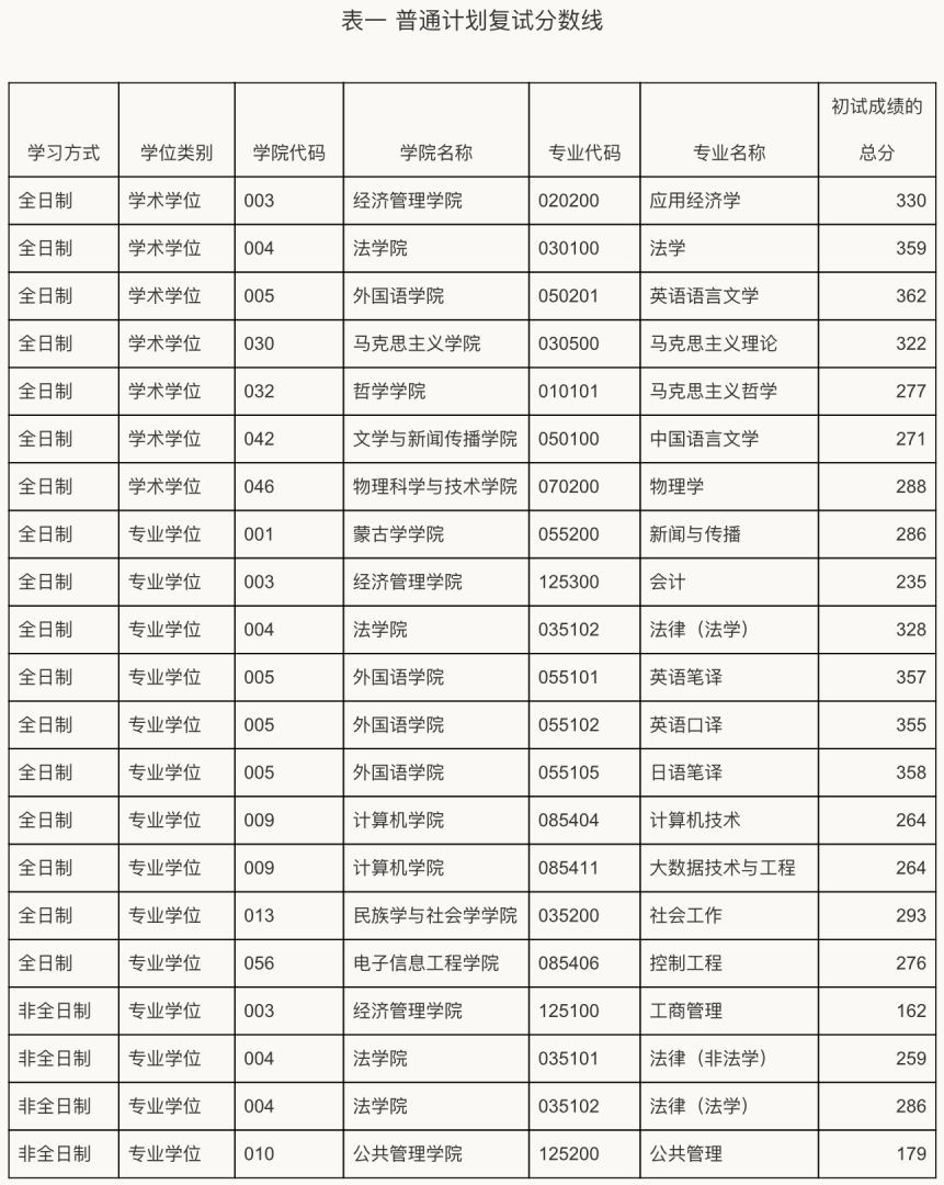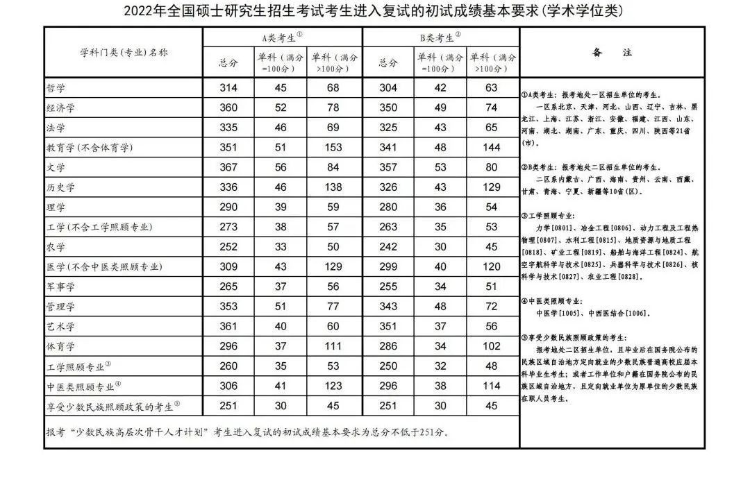 根据教育部《2022年全国硕士研究生招生考试考生进入复试的初试成绩基本要求》 (以下简称家线),结合学校招生计划情况,按照差额复试比例要求,部分专业在符合国家线的基础上进行自线。普通计划见表一,专项计划见表二。