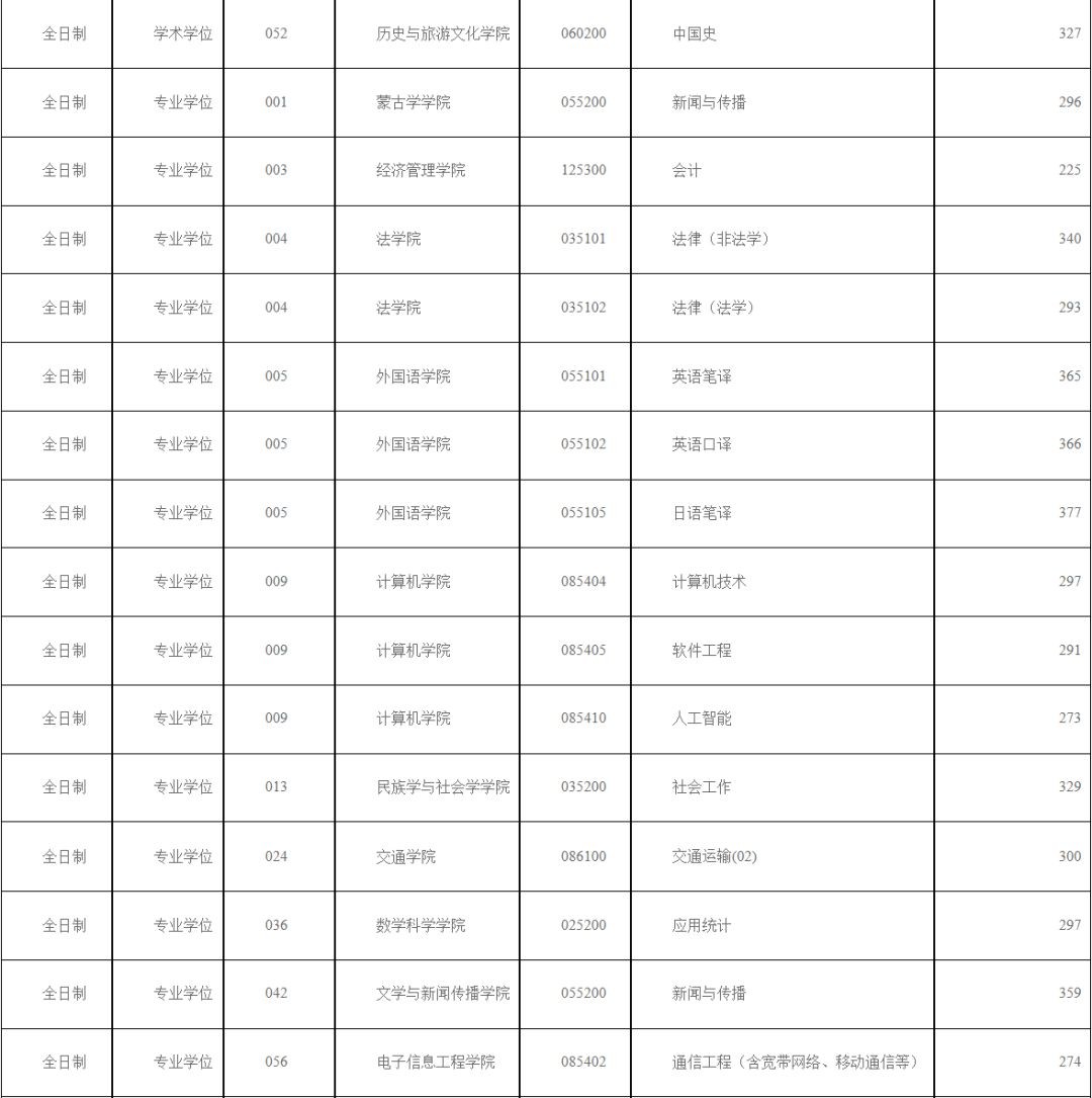 2022年内蒙古大学院线