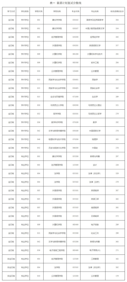 2021-2024年国家线和内蒙古大学复试分数线一览