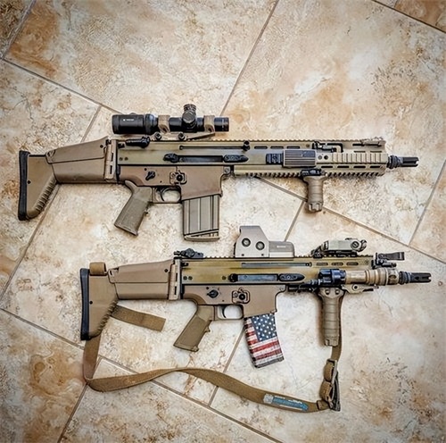 两种SCAR,上边的是长枪管长护木的H,下方是短枪管的L