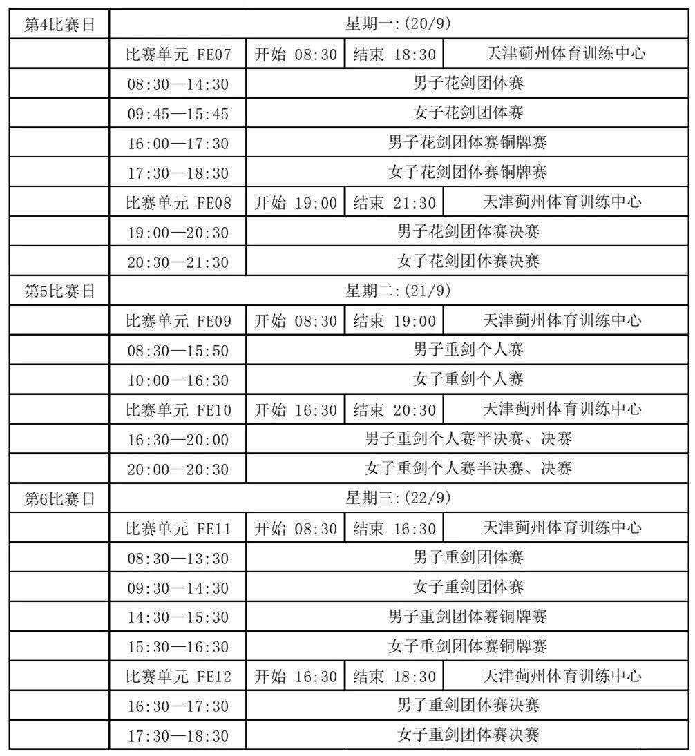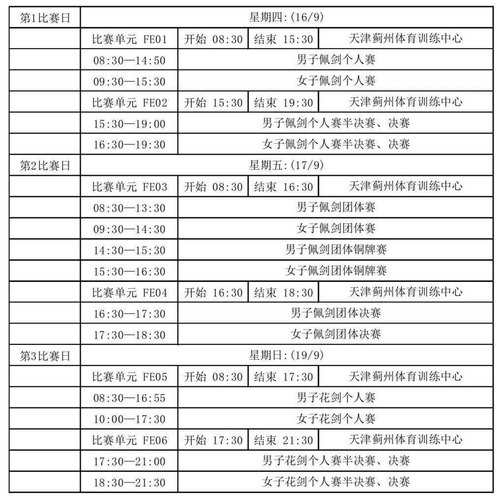 十四运会击剑比赛赛程安排