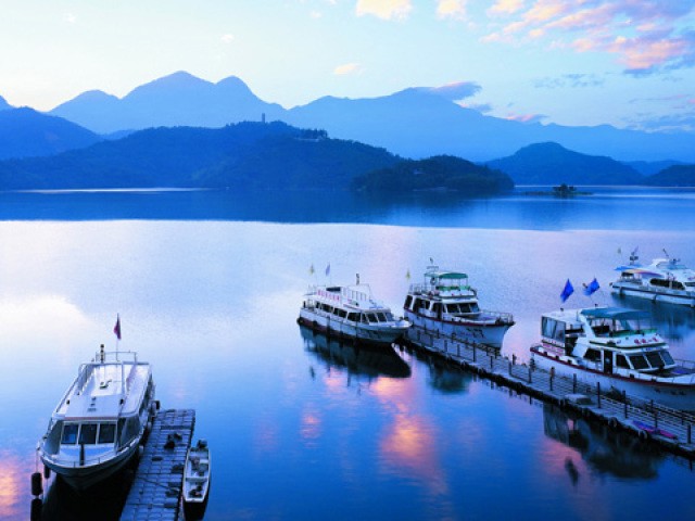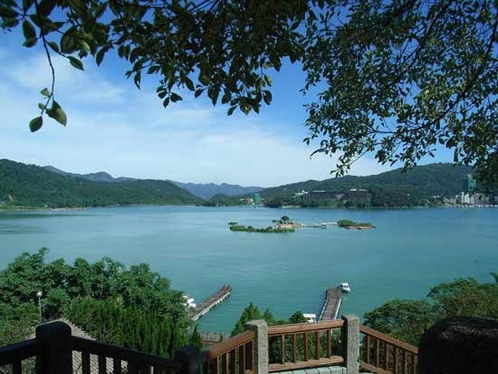 日月潭是台湾岛最著名的风景区。它位于西部的南投县,是台湾省第二大湖泊、最大的天然湖泊,卧伏在玉山和阿里山之间的山头上。湖岸周长35千米,面积7.7㎞²,水深二三十米。水面比著名湖泊--杭州西湖略大,水深却超过西湖10多倍。日月潭本来是两个单独的湖泊,后来因为发电需要,在下游筑坝,水位上升,两湖就连为一体了。