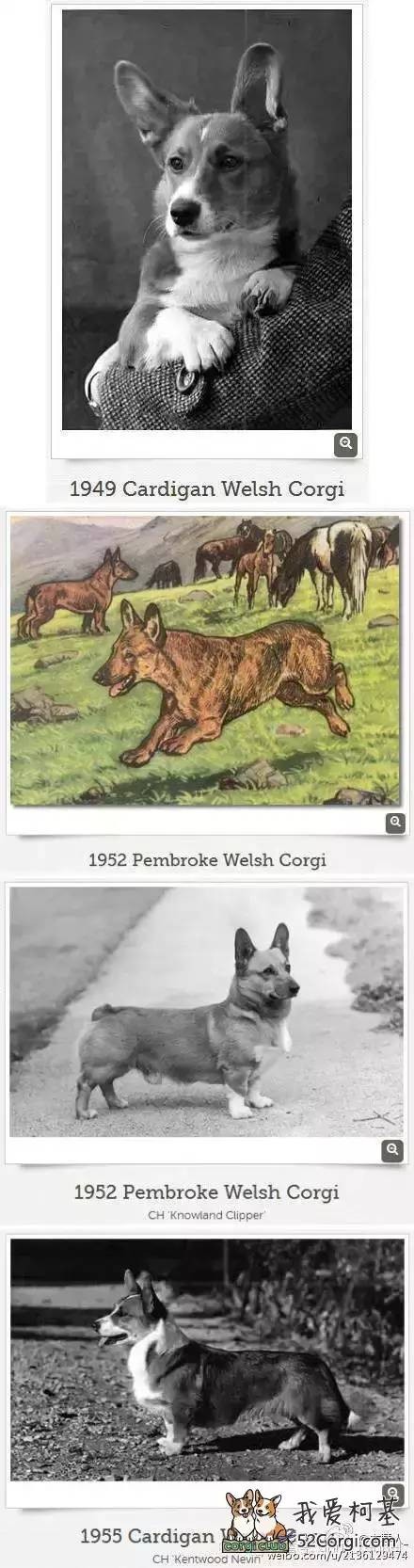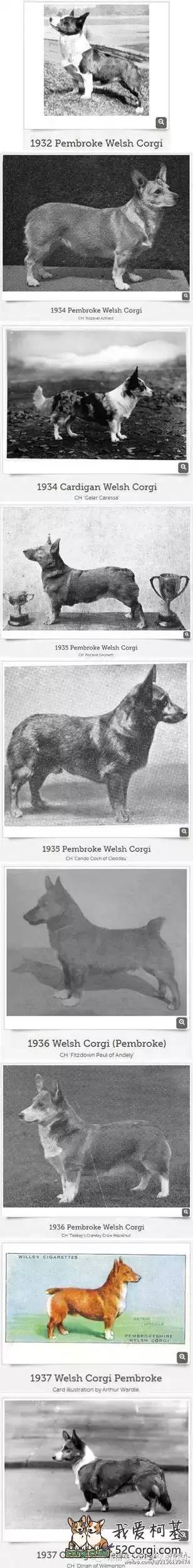 其次,他们面部的表现力完全不同。由于卡迪根属于古老犬种,他们更加稳定,从1934年开始到现在的卡迪根整体变化并不大,但是彭布罗克整体的改良就很大了。下面一系列的图片能够显示这一点。