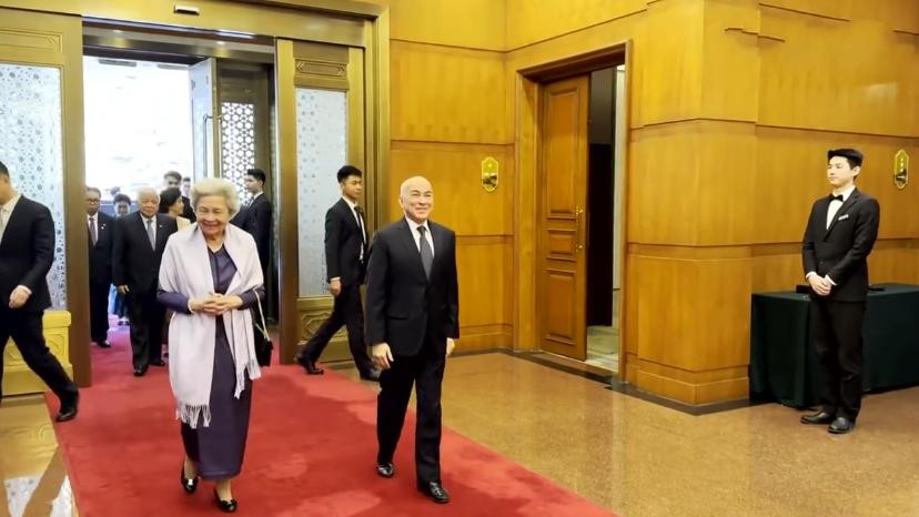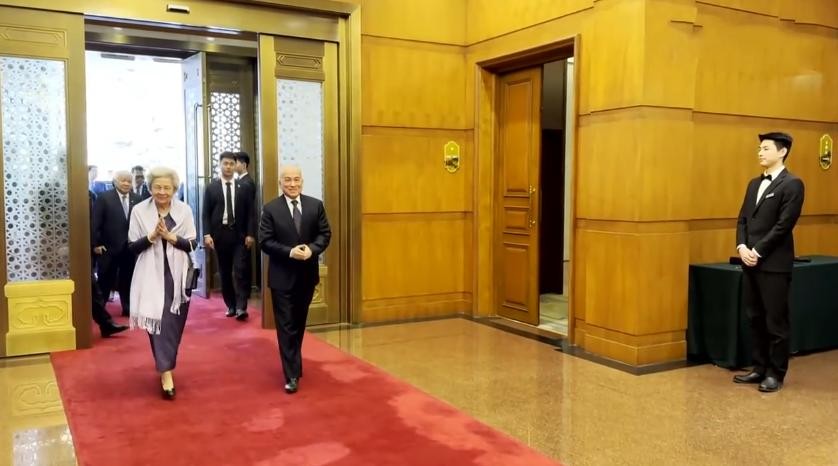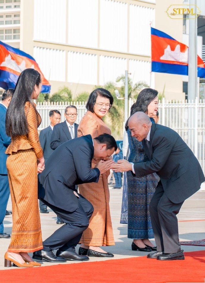柬埔寨国王和太后抵达北京,86岁太后莫尼列穿紫裙配白披风超优雅