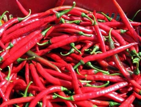 第二步,红椒洗净后,摘去根蒂,将其放入通风处控干水,干辣椒洗净后同样要控干水,红辣椒和干辣椒一同打碎;