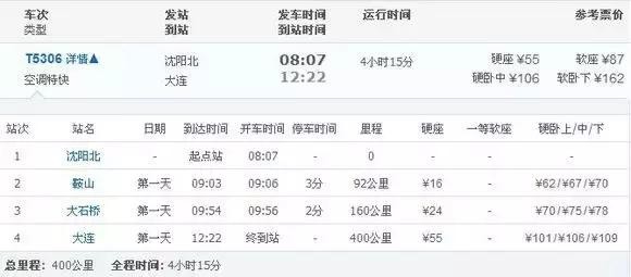 其中,加开大连往返沈阳之间的T5305/6次临时旅客特快列车,中途仅经停鞍山一站,就是当年的“辽东半岛号”!4小时,54.5元!