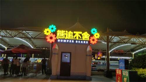 再往前,会过一个水帘洞。然后到千古蝶恋讲的就是梁山伯与祝英台的故事,因为“疫情”的缘故暂时未对外开放。然后最后可以去玩,“熊追不舍”就是类似碰碰车玩过之后,今天的方特到这里就结束了!