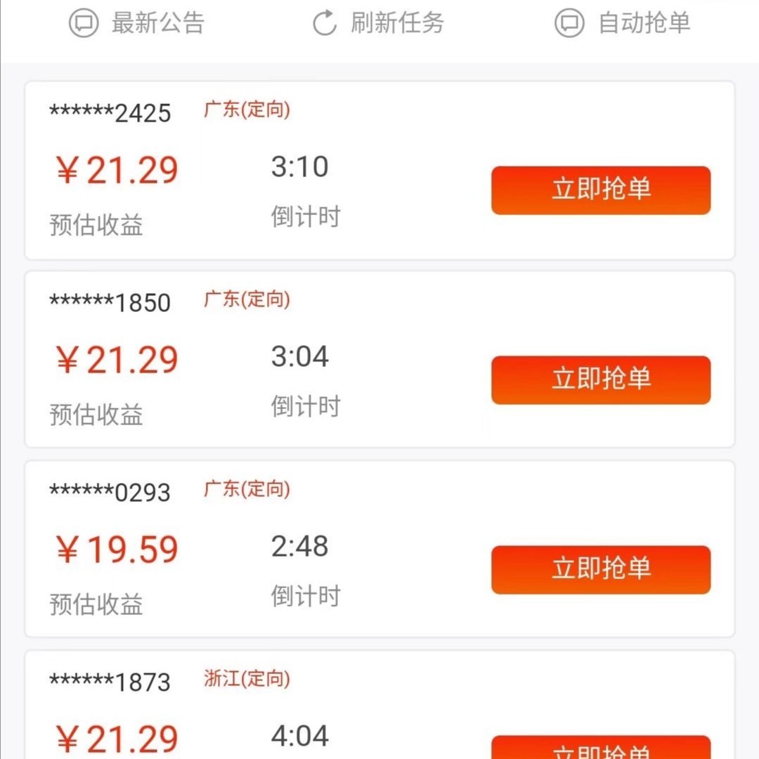 第一步、打开APP从主页开始接单,点击抢单(必须先定位,接同地区的单)