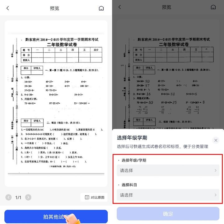 同时,在擦除试卷字迹以后,可以选择快速生成试卷名称和相应的标签。方便分类管理和查找