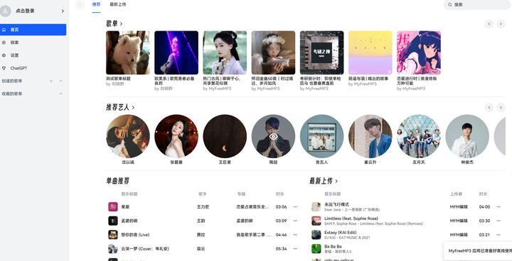 听歌星人快点看过来啦!一个完全免费的在线听歌网站,同时还支持免费下载音乐,能让你找到所有想听的歌曲,打开首页就能看到准备的歌单、推荐艺人、单曲推荐等板块