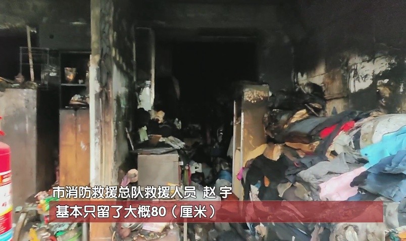 市消防救援总队救援人员赵宇表示,事发门口两侧堆放大量的物品,基本只留了大概80厘米左右的过道,其余的地方全都是堆的垃圾杂物,比人都高,所以他几乎没有可能能逃生。