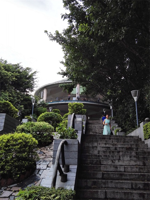 山顶的圆形建筑,每天都有不少人在此唱歌跳舞