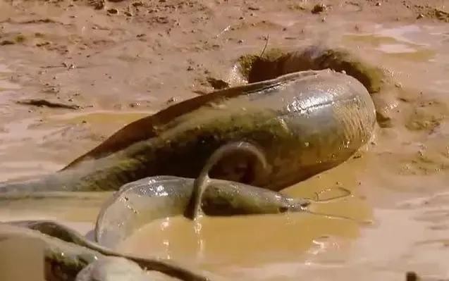 非洲肺鱼:在非洲是重要能量来源,不吃不喝休眠3~5年遇水而活。
