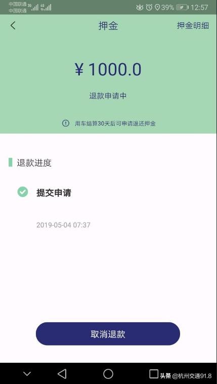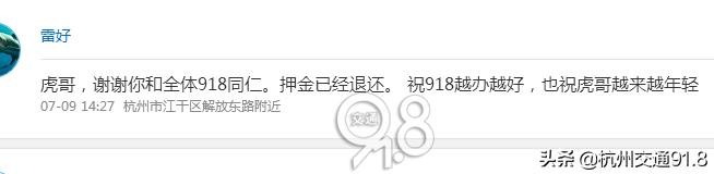 随后李先生选在“维权神器”开吧APP上发起投诉,接到投诉后杭州交通91.8《我的汽车有话说》节目上线督办,当天下午2点多,押金成功退回!