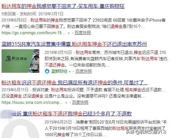 另据了解,关于盼达租车押金难退的问题,全国各地媒体多有报道: