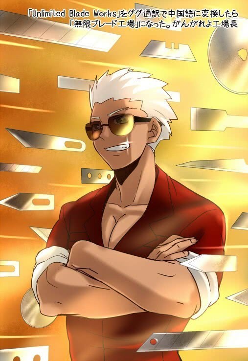 在命运 守护之夜这部番中,金闪闪遭遇了他的第一次失败。因为金闪闪作为人神的混血,虽然有着近乎神的姿态,但是因为还有3分之1人的血统,所以过于傲慢。最后被剧中主人公士郎,用无限剑制(Unlimited Blade Works)以数量和不输于金闪闪王之宝库中的武器的质量所击败。