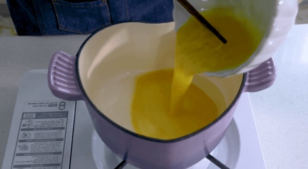 4.起锅烧油,油热后倒入鸡蛋液翻炒