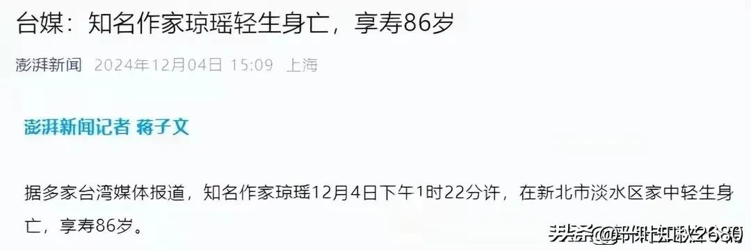 琼瑶离世为何不用享年?享年、享寿、终年、殁年、卒年的区别