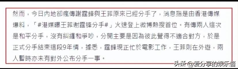 王菲与谢霆锋这一次是真的分开了两人属于和平分手,中间并没有争吵也没有互揭隐私。这对相差11岁的姐弟恋最终以和平的方式结束了他们的恋情,对于他们的分手,我们感到非常遗憾,对于这次分手的事情是不是真实的,还是因为张柏芝?欢迎大家在评论区发表留言~