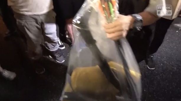 警员在袋内发现2支垒球棍、1袋约1厘米直径的钢珠、护甲、通讯器材及扩音机,这些物品疑为近期示威者在暴力冲击案件中所用的物资。由于4人未有合理解释物品的用途,经调查后,警方以涉嫌“藏有攻击性武器”将4人拘捕。