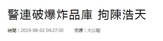 据香港“东网”2日报道,1日深夜,香港警方突击搜查火炭坳背湾街45号喜利佳工业大厦,查获一批疑似用作暴力示威的物资,拘捕7男1女,其中一名被捕男子为已被取缔的“港独”团体“香港民族党”召集人陈浩天。