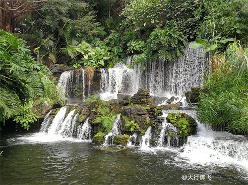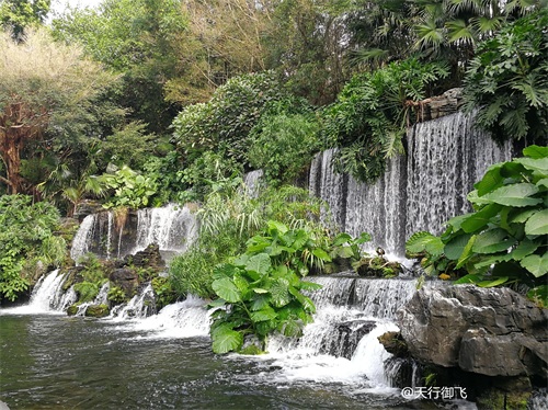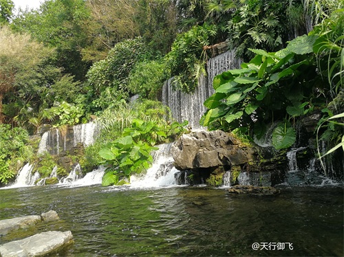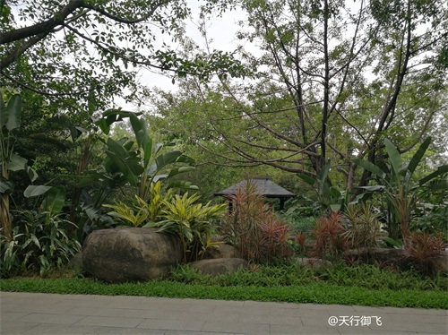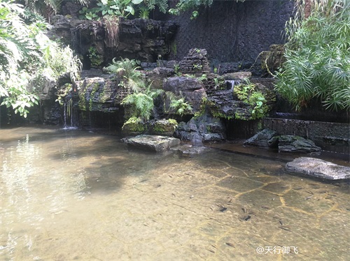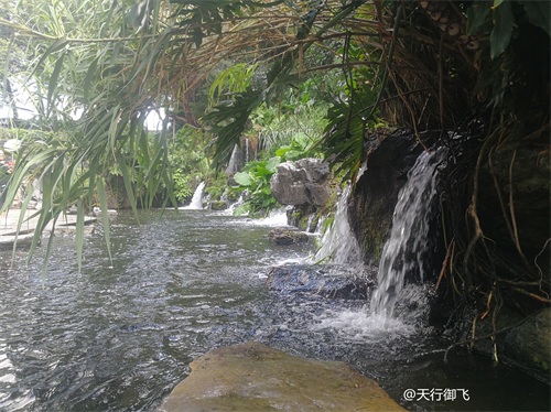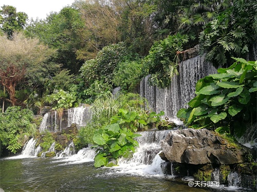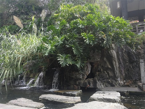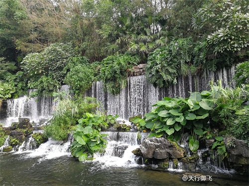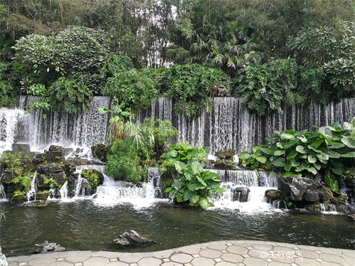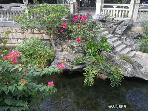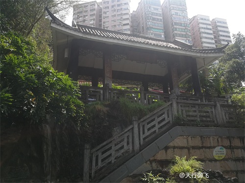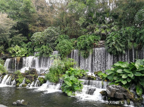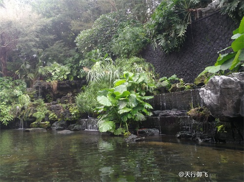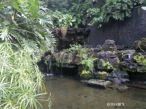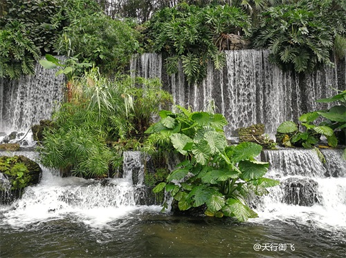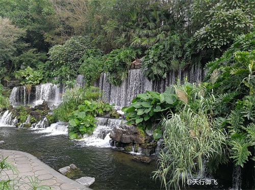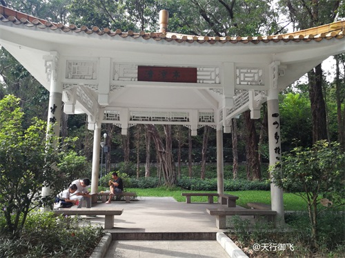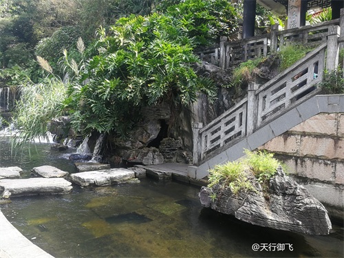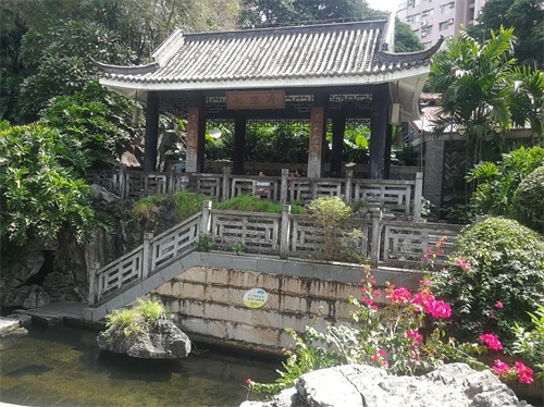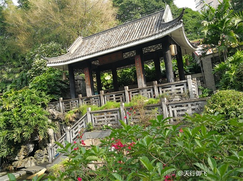 进入公园,首先引入眼帘的是“云山珠水”的文溪瀑布。潺潺流水,在石头飞溅成花;微风轻拂,泛起阵阵清凉。旁边还有一座黑褐琉璃瓦顶的亭子,别致独特的岭南风格吸引了人的脚步。